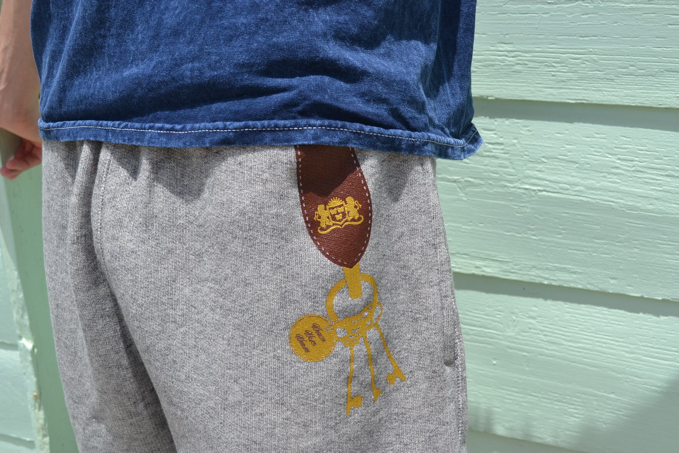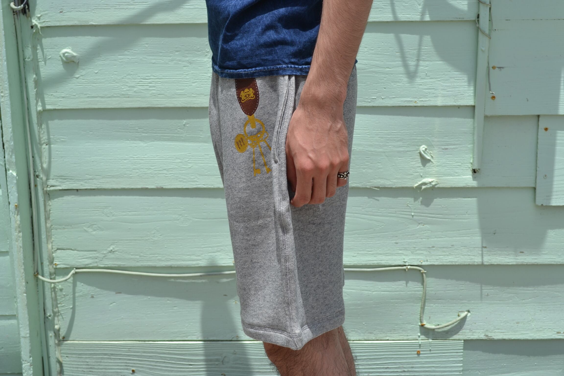 柔らかく履きやすいスウェットショーツをベースに、架空のWWWキーホルダーをフェイクプリント。