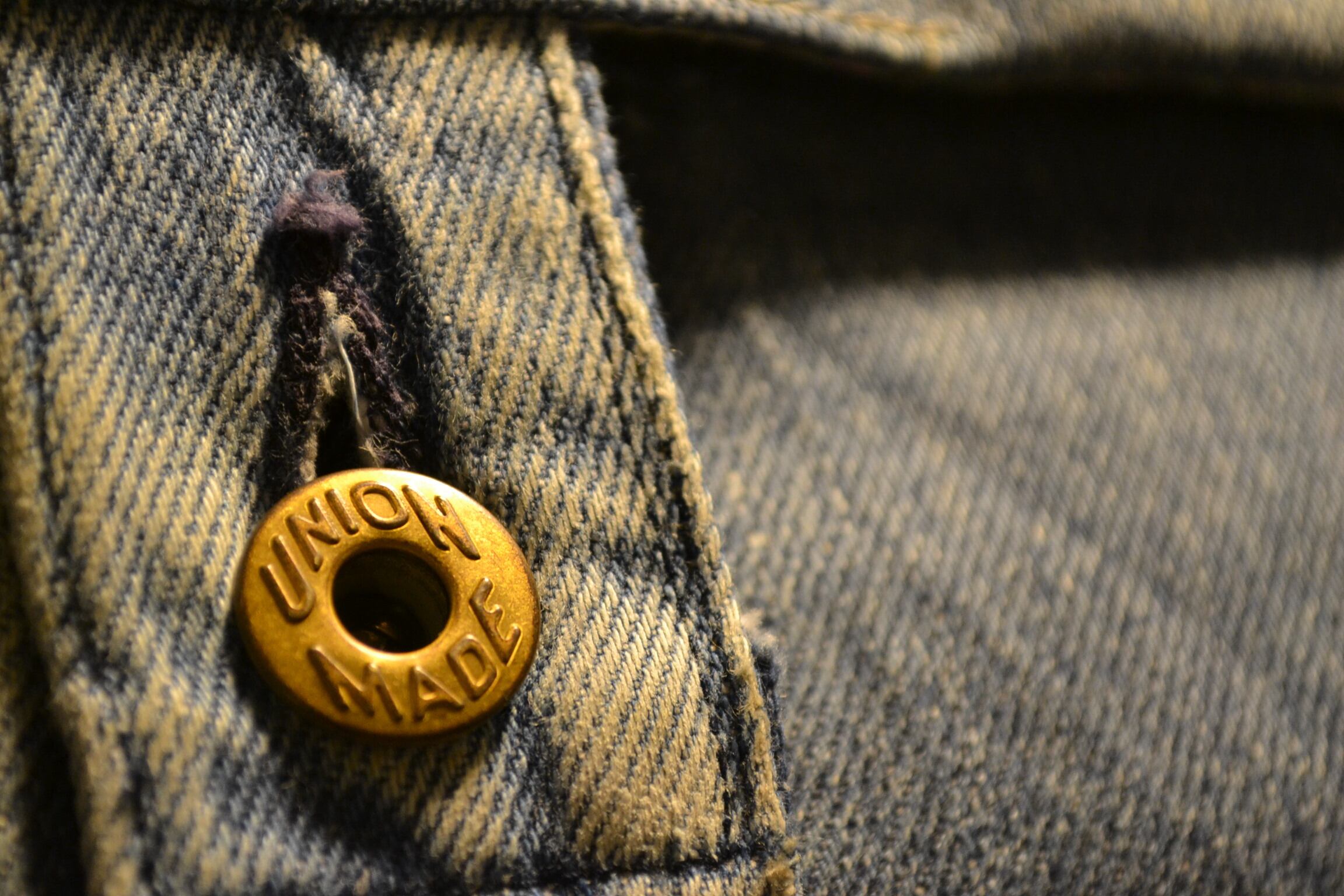 表面にミリタリーやワークで使用されるステンシルを用いて加工を施し、裏面にはヴィンテージ復刻の"UNION MADE"ボタンを採用。