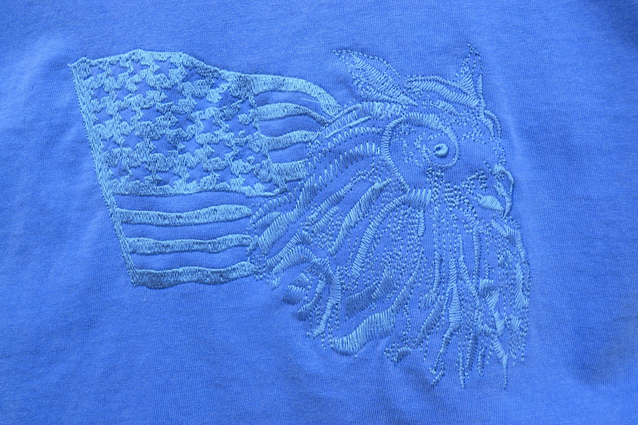 リアルタッチで描かれたフクロウの横顔とその後ろの星条旗が、細部まで丁寧に刺繍されています。
